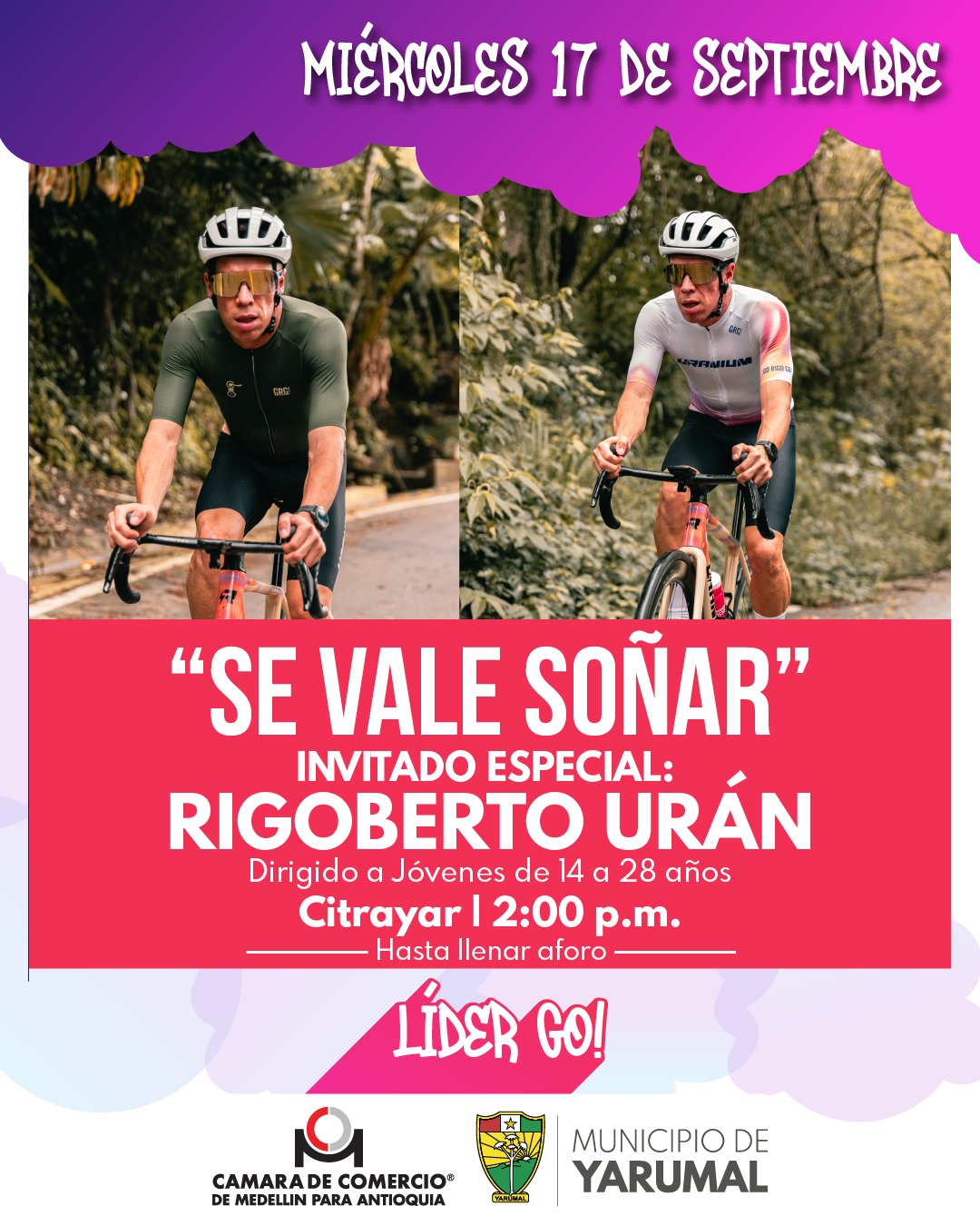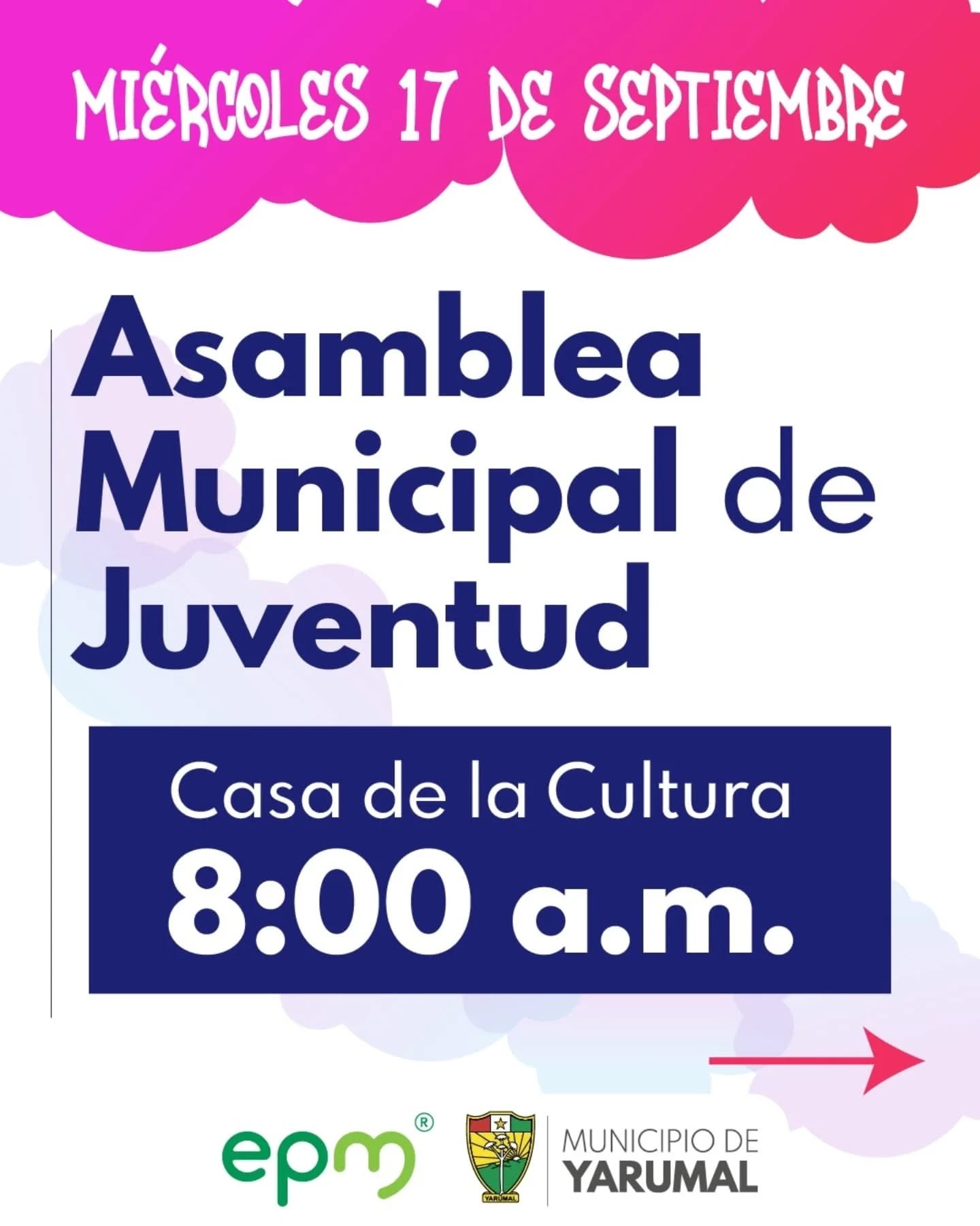 Publicado: 05/09/2025 09:15:14 Semana de la juventud 2025 - Miércoles Inicio: 17/09/2025 08:00:00 Finalización: 17/09/2025 18:00:00 Asamblea Municipal de JuventudCasa de la Cultura8:00 a.m."SE VALE SOÑAR" INVITADO ESPECIALDirigido a Jóvenes de 14 a 28 añosCitrayar 4:00 p.m.Hasta llenar aforo