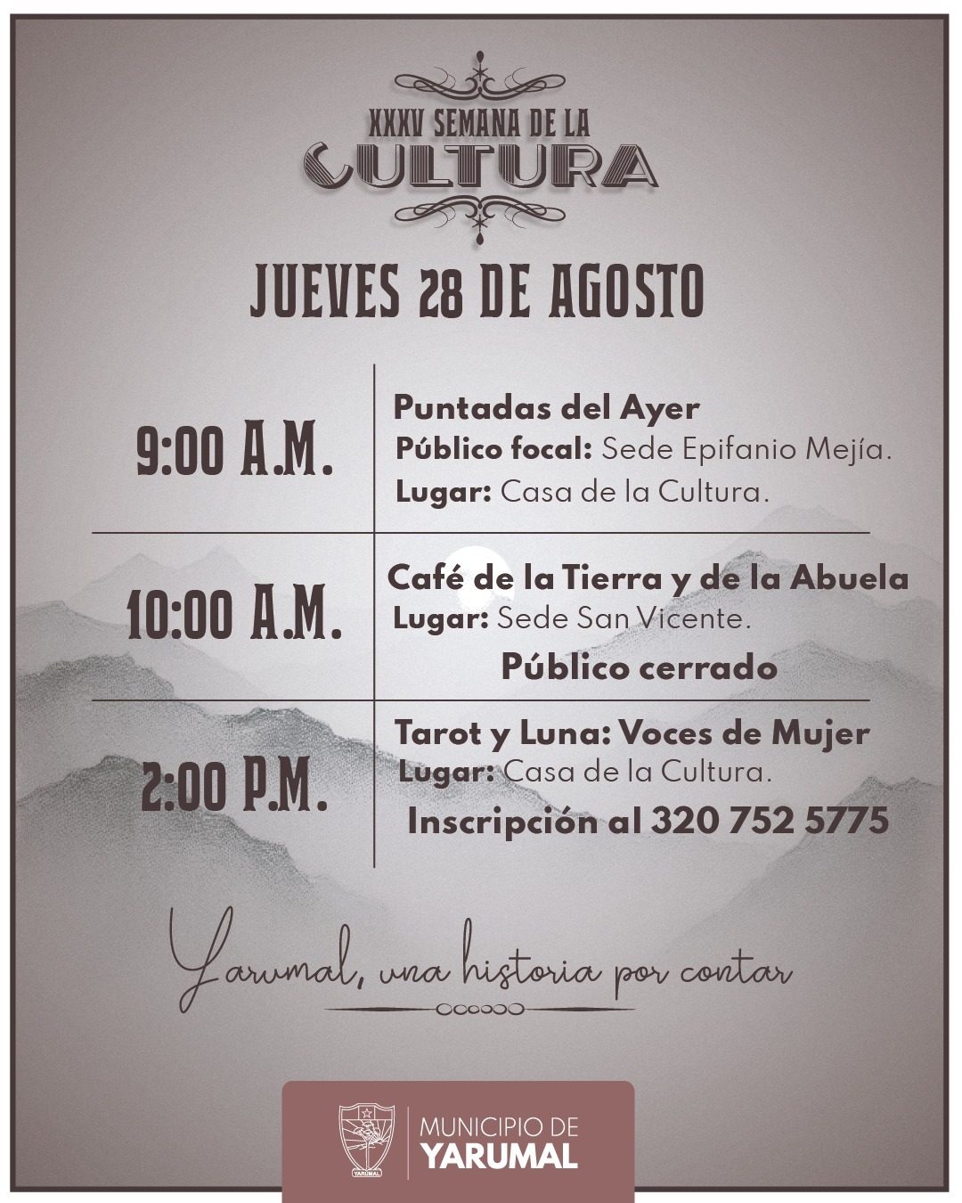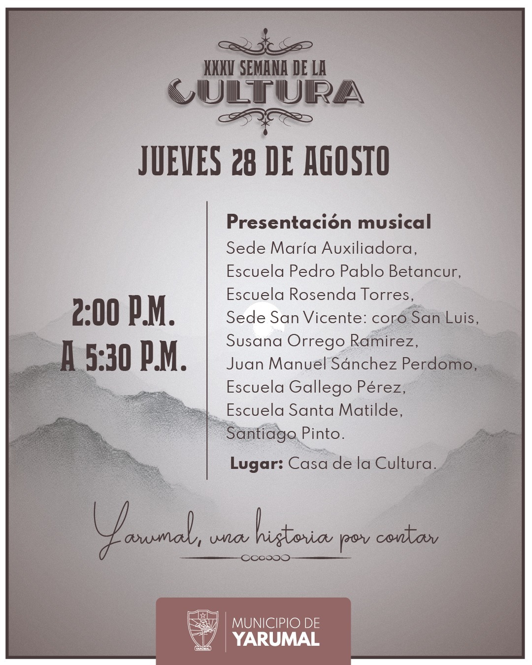 Llega la XXXV Semana de la Cultura: Yarumal, una historia por contar. 🎭🎶📚