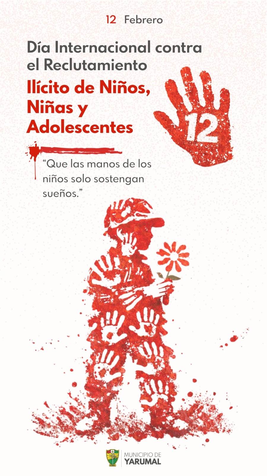 Hoy nos unimos al llamado mundial para decir NO al reclutamiento de niños, niñas y adolescentes en los conflictos armados. 🚫✋
