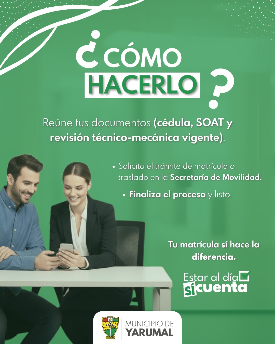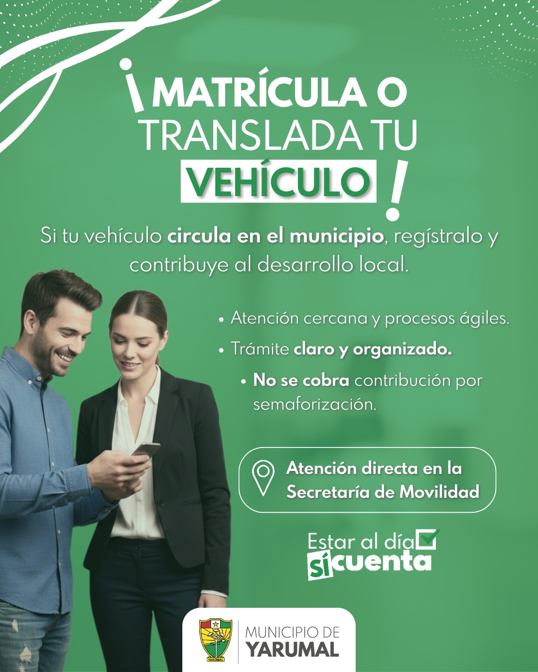 Tu matrícula sí hace la diferencia: aporta al desarrollo de Yarumal 🚗✨
